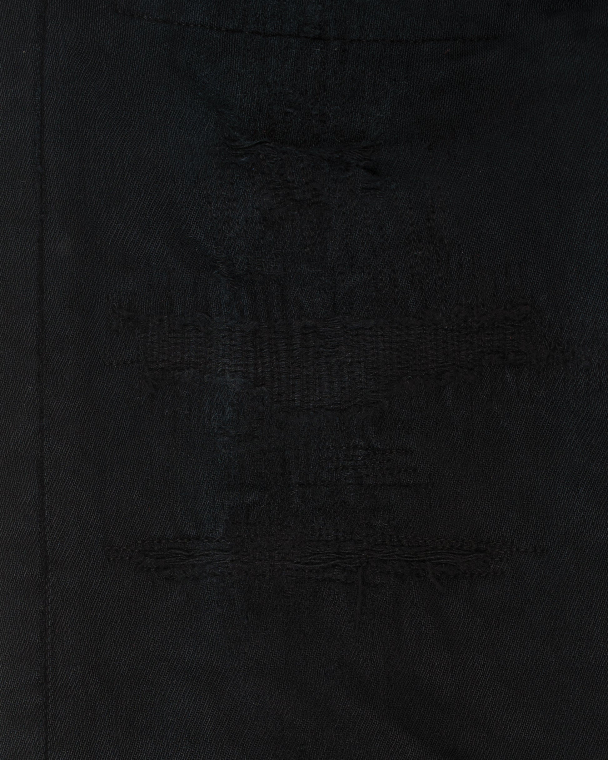REPAIR ALL HOLES AND REINFORCE ANY WEAK SPOTS USING A VARIETY OF THREAD COLORS AND TECHNIQUES TO GIVE IT A LOOK MOST TRUE TO BEING REPAIRED OVERTIME