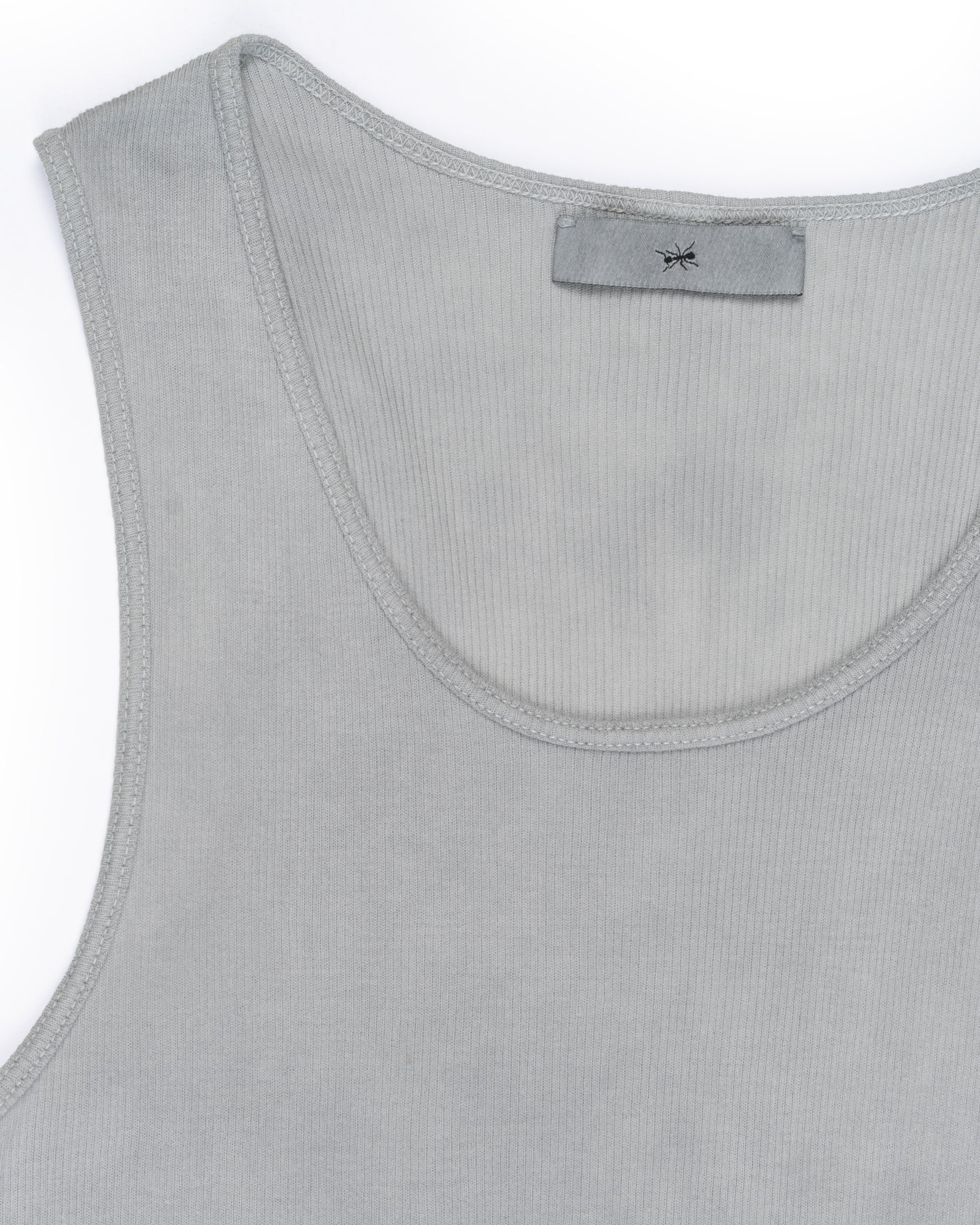 THIS TANKTOP IS MADE OUT OF AMERICAN 2X1 COTTON\ RIBBING FABRIC. IT FEATURES TONAL OVERLOCK CONSTRUCTION AND IS FINISHED WITH BIAS TAPE AND A RAW HEM