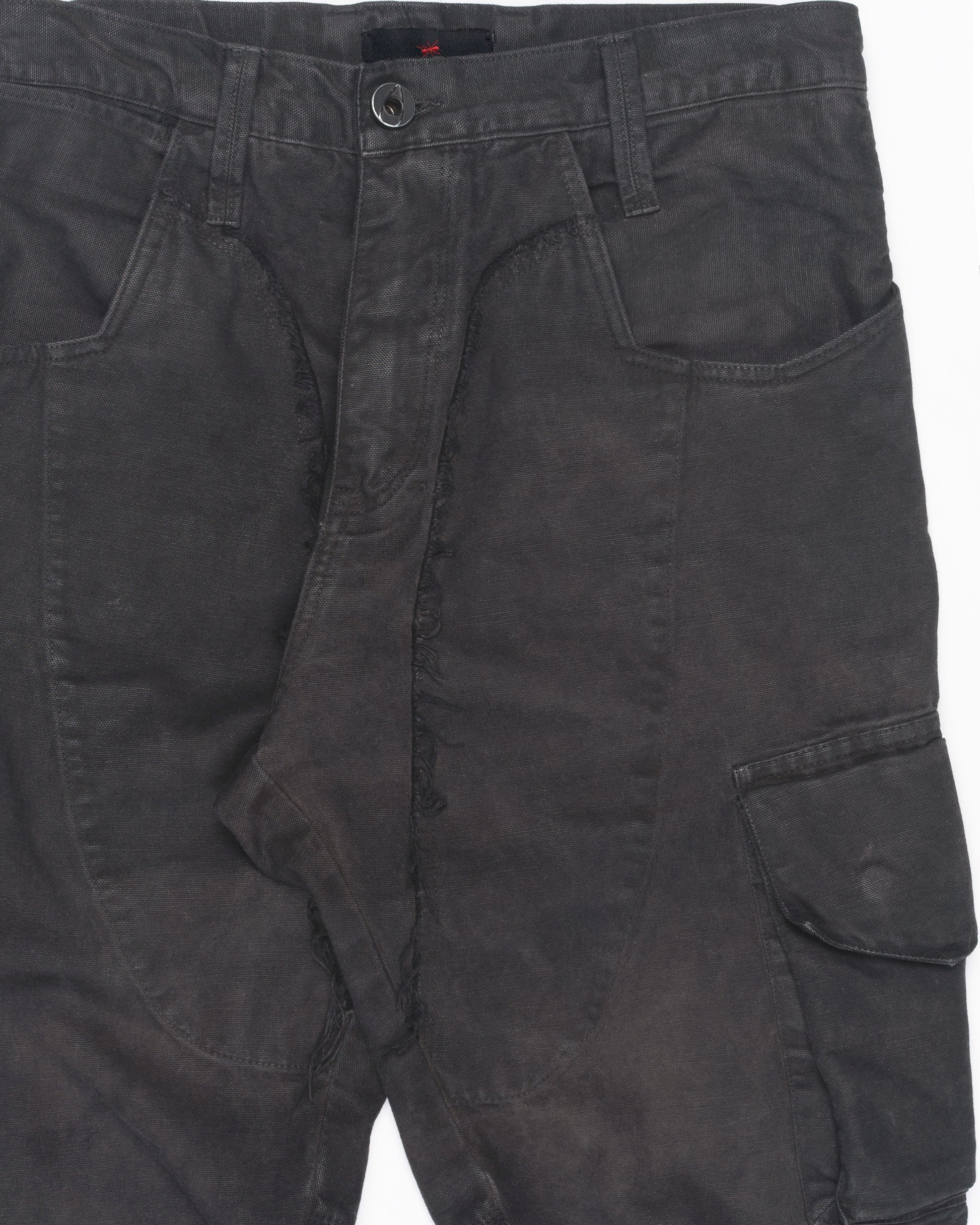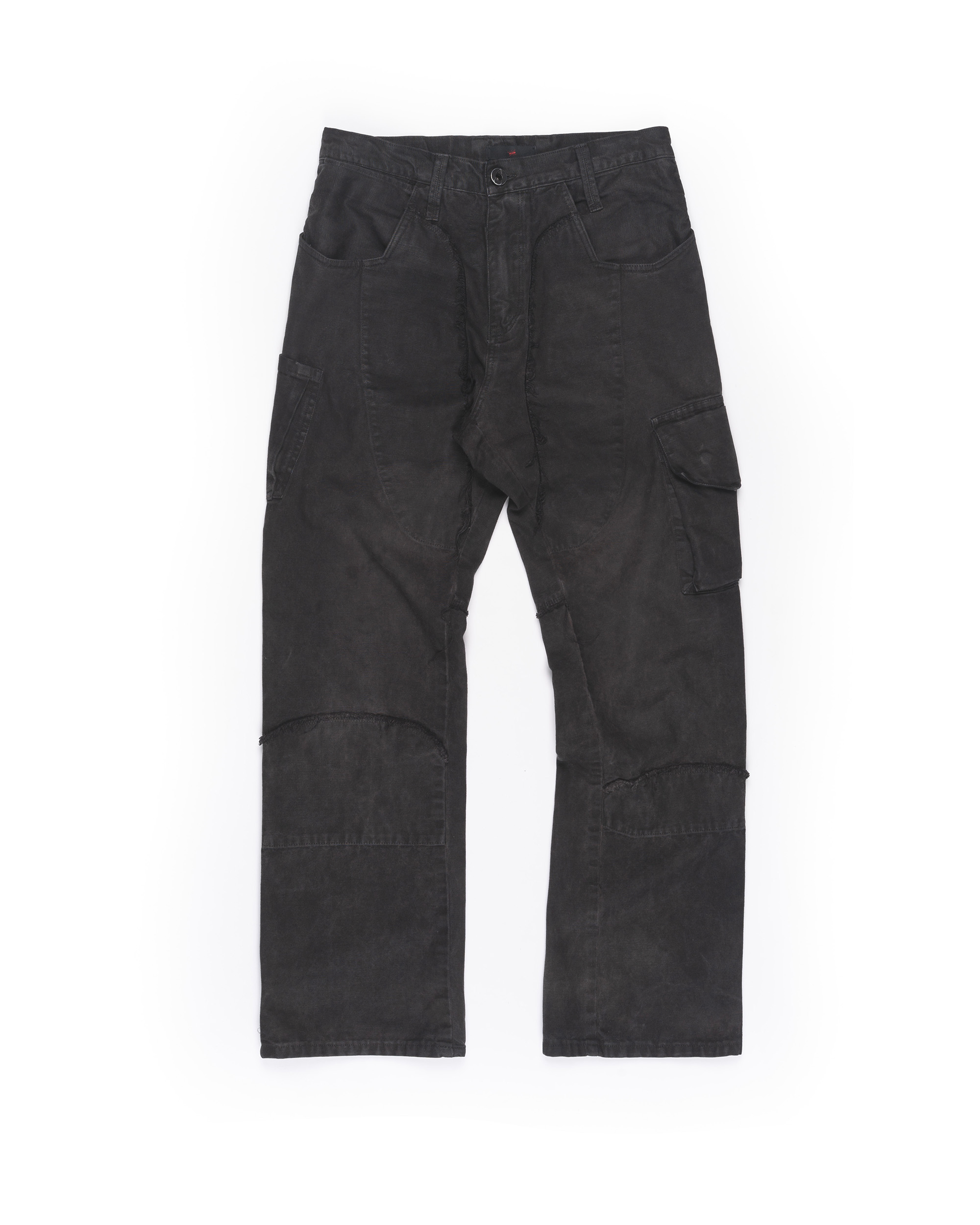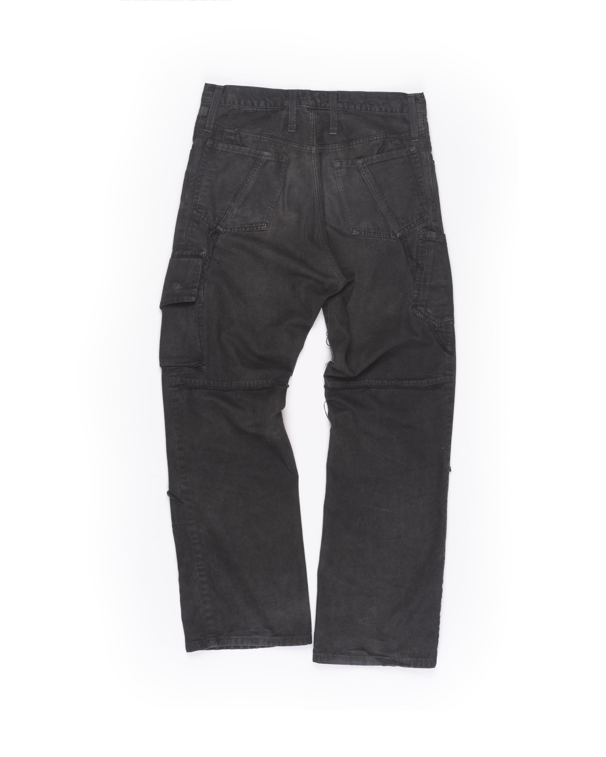 THESE PANTS ARE MADE OUT OF SCRAP JAPANESE CANVAS FABRIC. THEY FEATURE A-DART BACK YOLK, LINEAR FRONT POCKETS, CENTER SEAM BELT LOOPS.