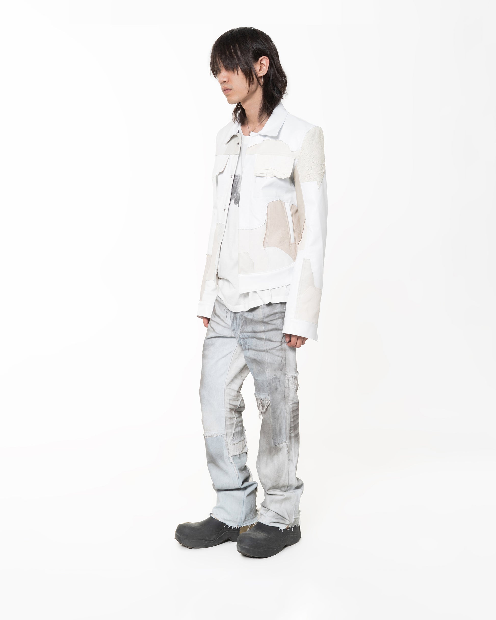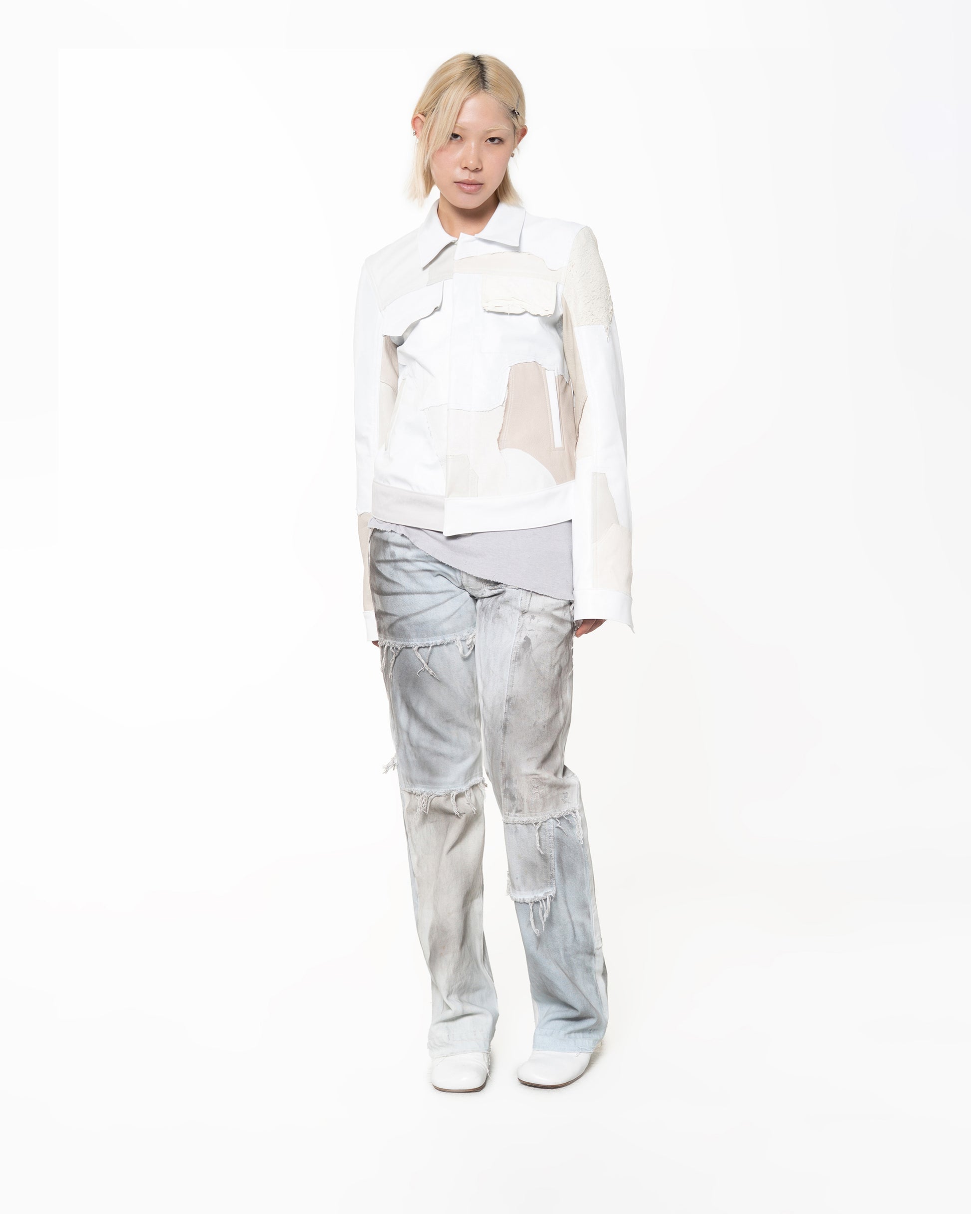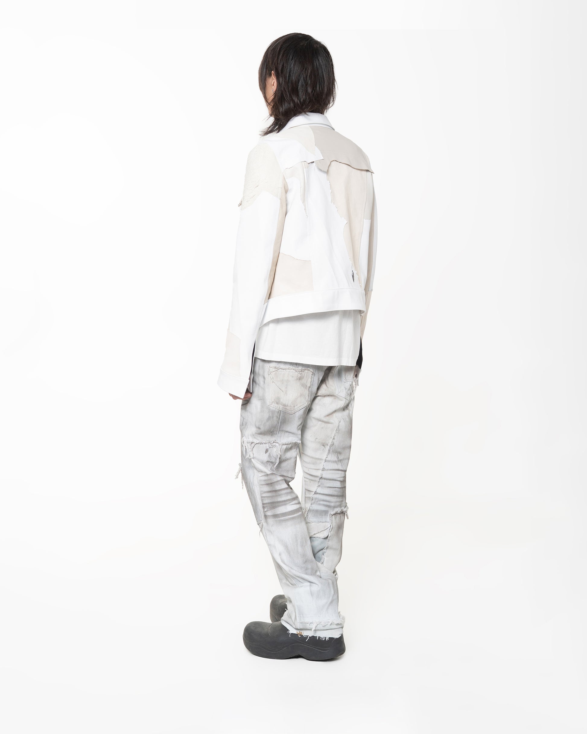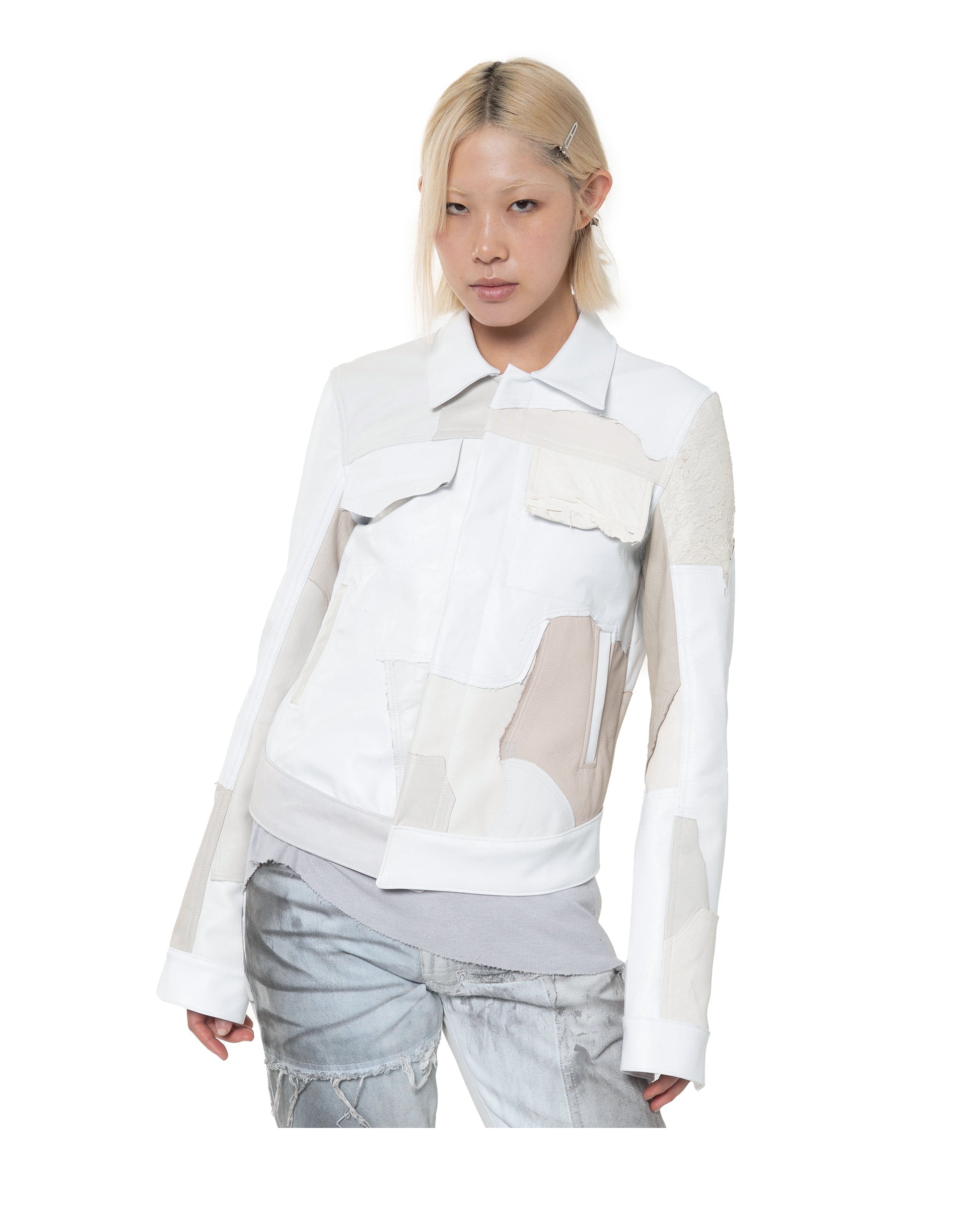 OUR SCRAP LEATHER JACKETS ARE MADE OUT OF 100% RECYCLED LEATHER SCRAP. COLLECTED FROM LOCAL BRANDS AND ARTISANS. EACH PANEL IS INDIVIDUALLY PATCH-WORKED, 4 FRONT POCKETS, DEADSTOCK SILK / COTTON LINING.